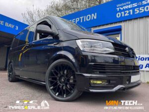 VW Transporter T6 Momo Revenge Alloy Wheels, H&R 40mm Lowering Springs and Rear Bumper Protector